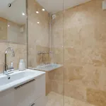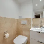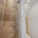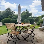 Eine Terrasse bietet zudem einen Ausblick auf den Garten. Zur Ausstattung des Badezimmers gehören auch eine Dusche. Ein Haartrockner und Badelaken sorgen für zusätzlichen Komfort.